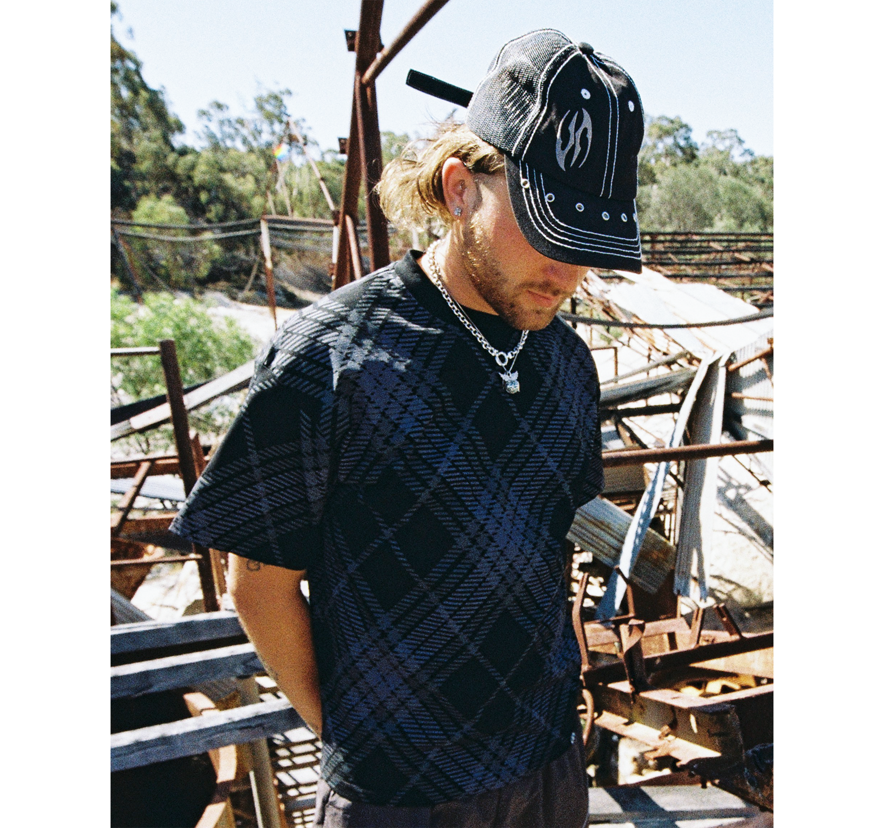 PLAID T-SHIRT - BLACK